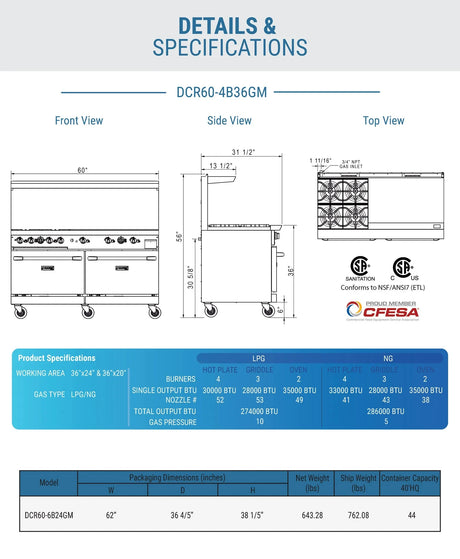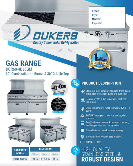 - Dukers - Dukers DCR60-10B 60" Gas Range with Ten (10) Open Burners (Free Shipping) (Add to cart for discount) Regular price $4,069.00Unit price /UnavailableBackordered