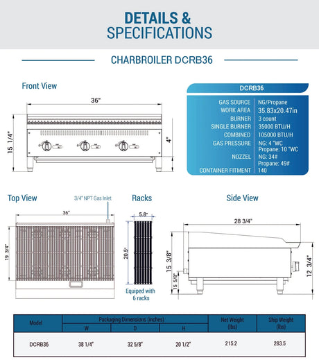 - Dukers - Dukers DCRB36 36 in. W Countertop Charbroiler (Free Shipping) (Add to cart for discount) Regular price $1,218.00Unit price /UnavailableBackordered