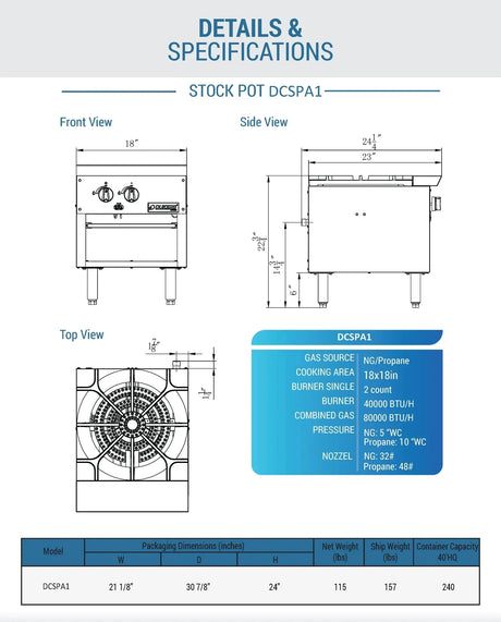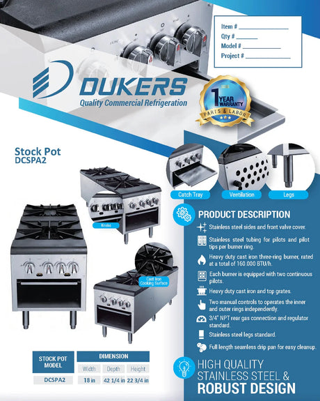 - Dukers - Dukers DCSPA2 Stock Pot Range (Free Shipping) (Add to cart for discount) Regular price $1,140.00Unit price /UnavailableBackordered