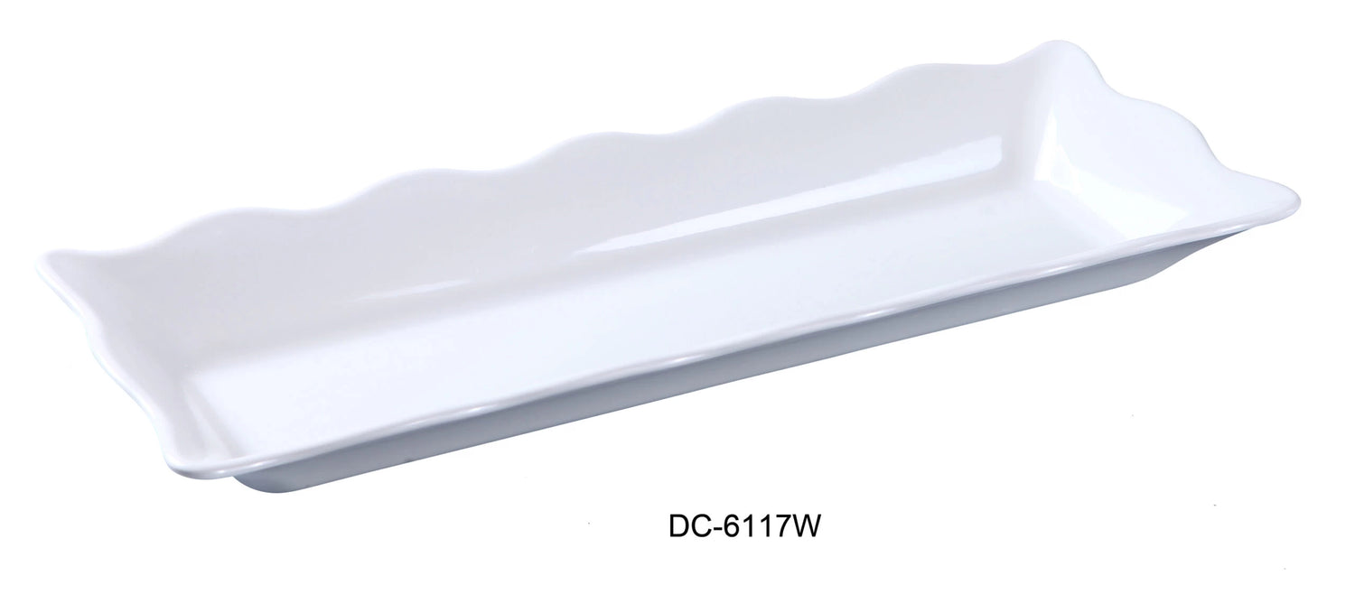 Yanco DC-6117W Deli Collection Scallop Edged Display Tray, 17.5″ Length, 6.75″ Width, 2″ Height, Melamine