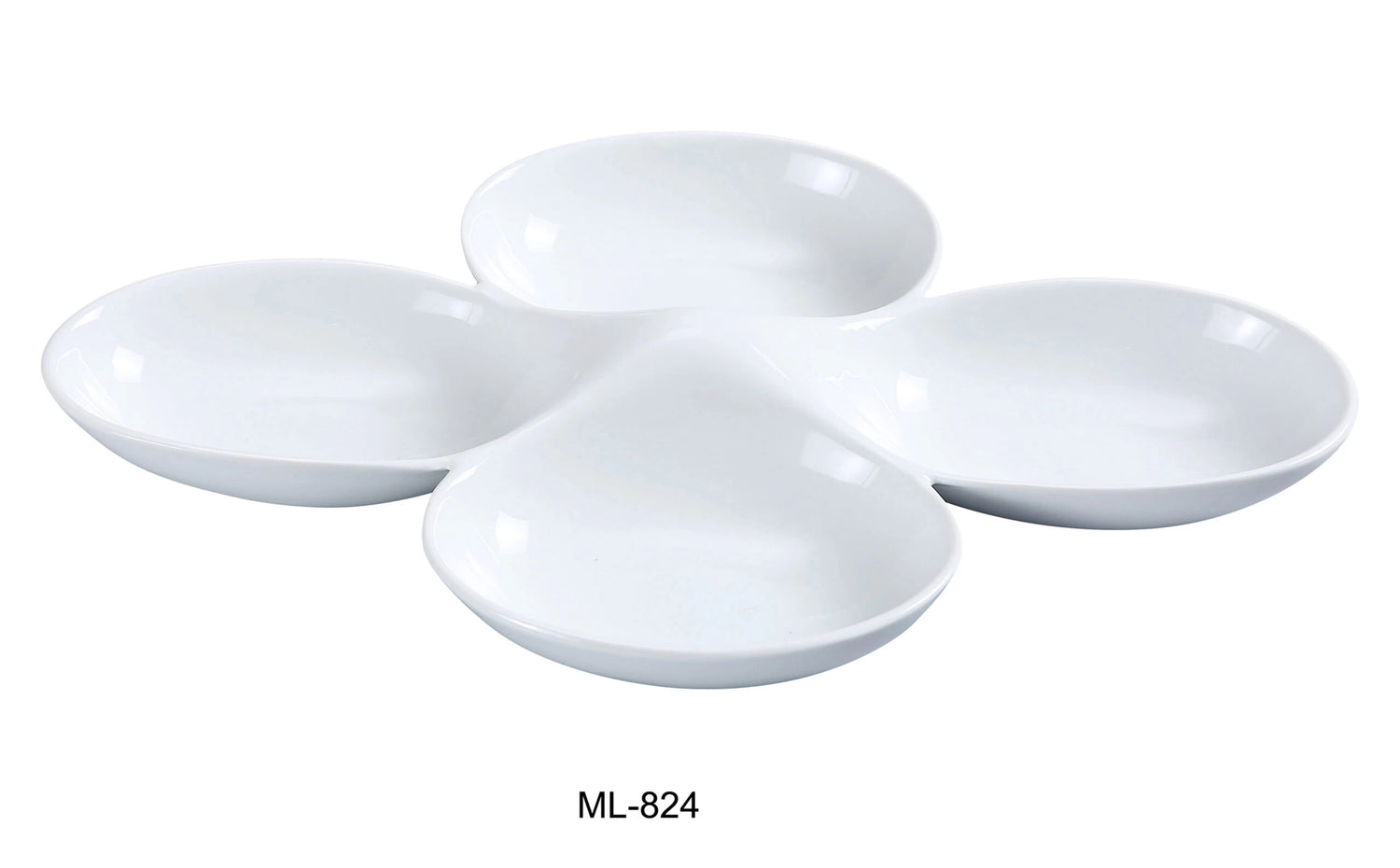 Yanco ML-824 Four Divided Bowl, 5 Oz/Well, 13.5″ Length, 8.75″ Width, Porcelain, Super White.