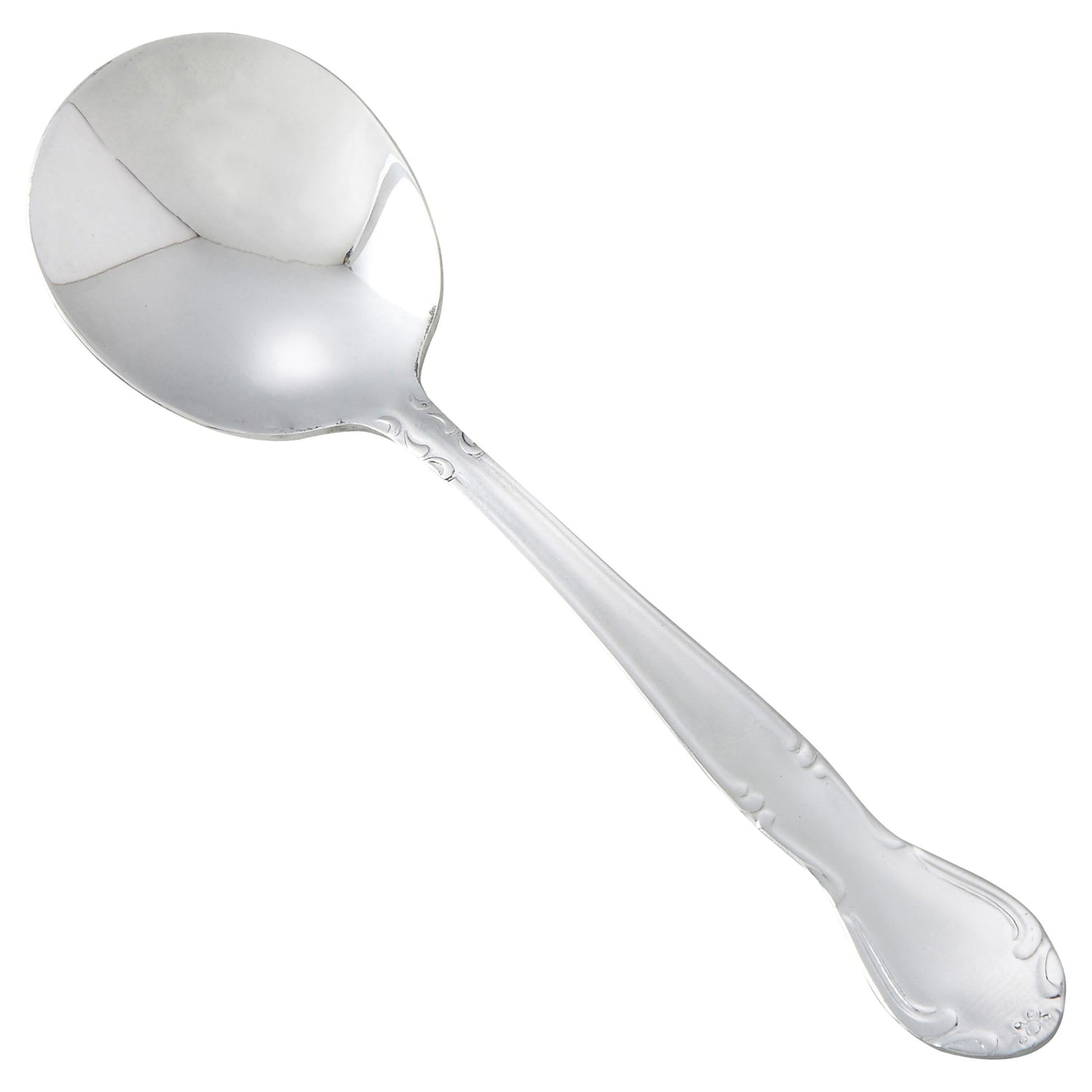 Add a touch of sophistication to your dining experience with our Elegance Mirror Bouillon Spoon. It's not just the embossed floral embellishments that set this spoon apart, but also the unique design, making it perfect for enjoying soups and broths. The shallow bowl contours perfectly to the interior of a soup bowl, maximizing your dining comfort. But what really sets this spoon apart is its material. Crafted from 18/0 commercial-grade stainless steel, it's not only heavyweight but also highly resistant to bending and corrosion, promising maximum durability. Whether you're a homeowner looking to upgrade your cutlery or a restaurant owner wanting to enhance your customers' dining experience, this spoon is an ideal choice. It's designed to withstand daily use in a commercial environment, making it perfect for establishments like hotels, restaurants, and cafes. And when it comes to cleaning, there's no need to worry. The Elegance Mirror Bouillon Spoon is approved for use in commercial dishwashers, making cleanup a breeze. With a length of 6.19 in and a weight of 44.0 lbs, this spoon offers a perfect balance of heft and comfort. Experience the blend of function and elegance with the Elegance Mirror Bouillon Spoon. Order yours today!