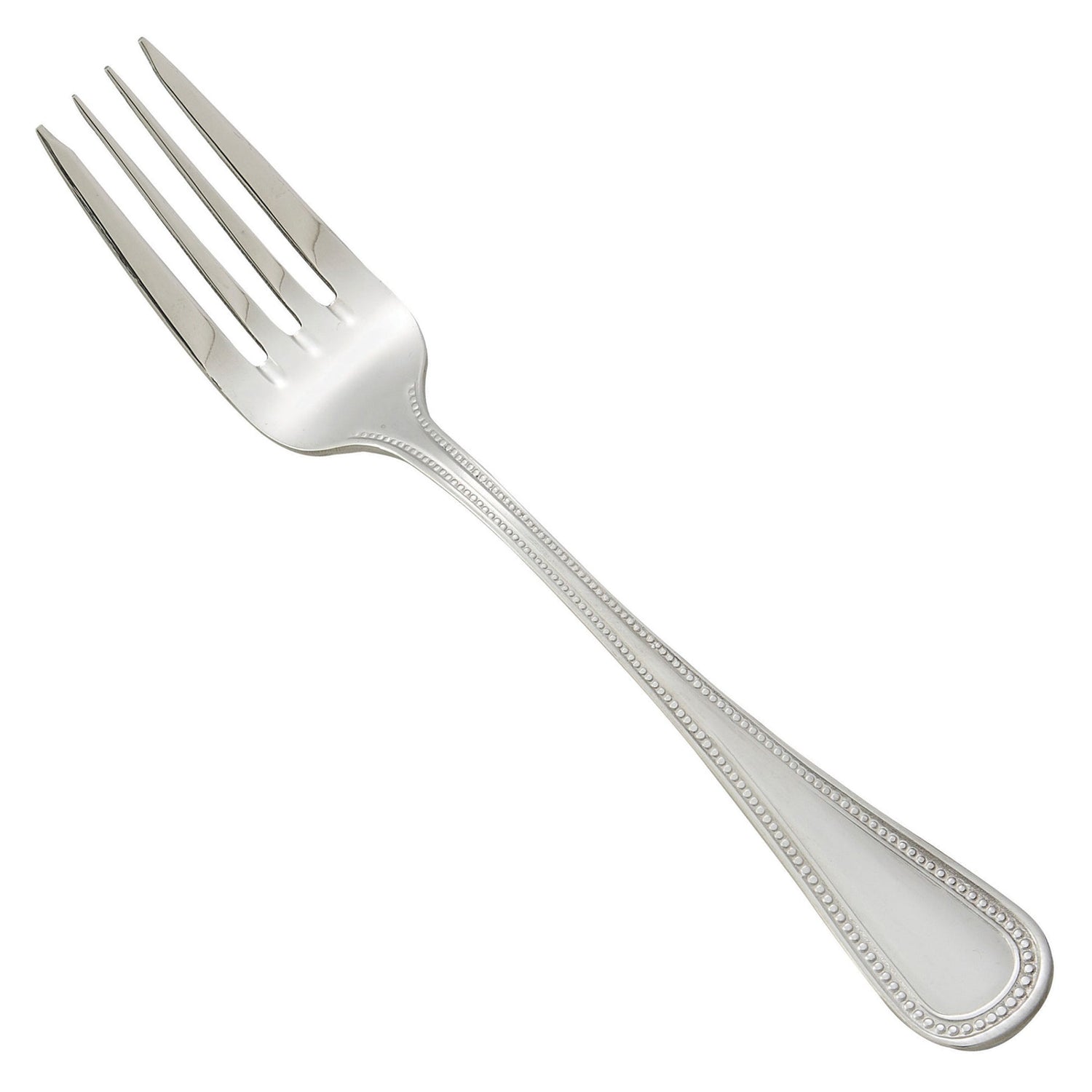Taking inspiration from the timeless beauty of a strand of pearls, this salad fork features a delicate beading pattern that adds a touch of classic charm to any tabletop. Its wide tines are specially designed to offer additional leverage for cutting and spearing large vegetables and leafy greens, making it an ideal addition to your cutlery collection.