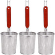 - Made from stainless steel mesh with sturdy plate steel; wooden handle with 2 hooks conveniently hangs on the pot while in use and stores away easily