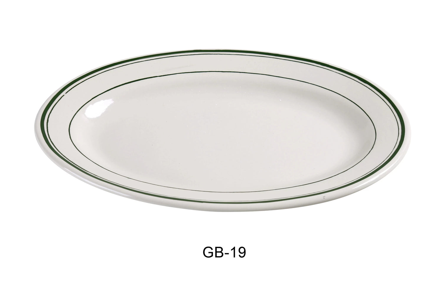 Yanco GB-19 Green Band Platter, 13.5″ Length, 9.5″ Width, China, American White Color.