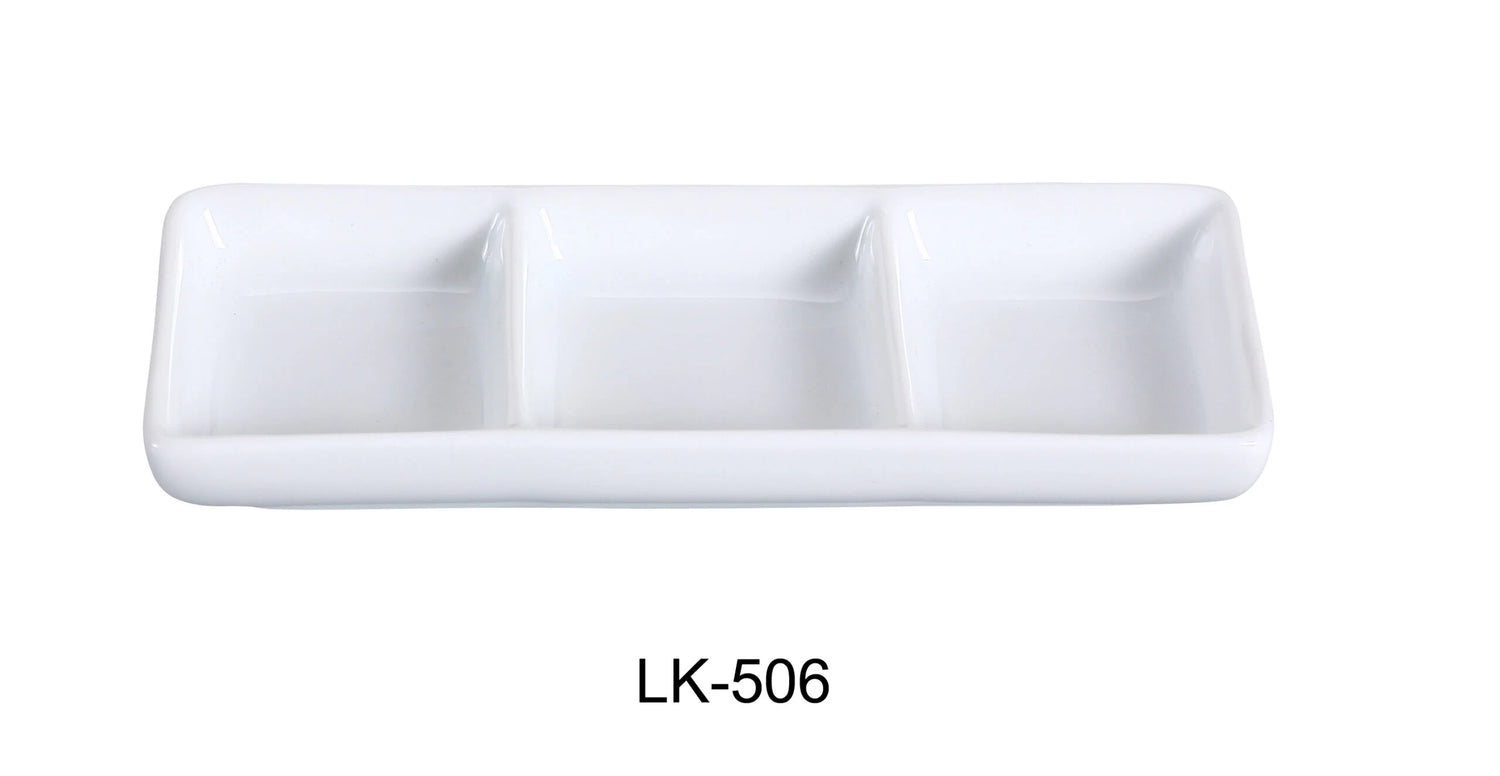 Yanco LK-506 Triple Dish, 1.5 oz /Well, 6″ Length x 2.5″ Width, Porcelain, Bone White.