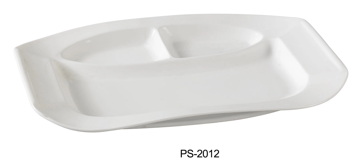 Yanco PS-2012 3-Compartment Plate, 12″ Length x 8.5″ Width, , Porcelain, Bone White