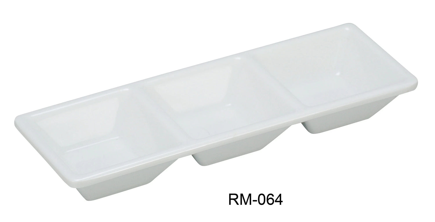 Yanco RM-064 Rome 3-Compartment Dessert Dish, 7.5″ Length, 2.5″ Width, Melamine, White Color.