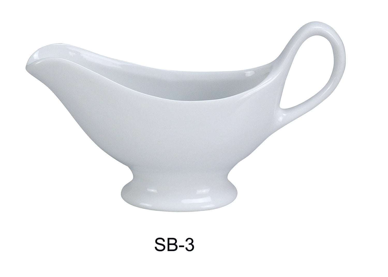 Yanco SB-3 Sauce Boat, 3.5 oz Capacity, 7″ Length, 2″ Width, 2.15″ Height, Porcelain, Super White Color.
