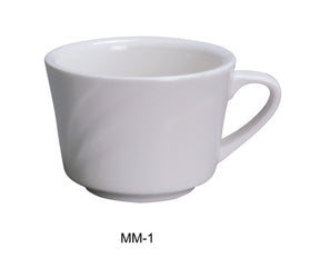 Yanco MM-1 Miami 7.5 盎司咖啡/茶杯,直径 3.5 英寸,瓷器,骨白色。