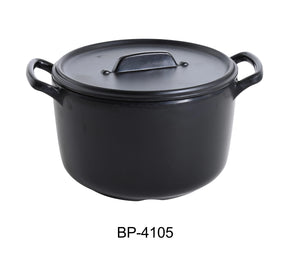Yanco BP-4105 黑珍珠 5.5 英寸碗,带手柄和盖子,28 盎司,带手柄长 7.5 英寸,高 3.5 英寸,三聚氰胺,黑色,哑光饰面