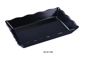 Yanco DC-6114B Deli Collection 扇贝边展示托盘,14 英寸长,9.5 英寸宽,2 英寸高,三聚氰胺,黑色