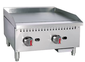 Designed for busy commercial kitchens, the HLRG‑600 delivers diner-quality performance in a compact 24″ footprint. Equipped with two high-powered 30,000 BTU burners and a rugged 16 mm thick griddle plate, it offers fast heat-up times, excellent heat retention, and even cooking—perfect for everything from smash burgers and pancakes to stir-fries and eggs.