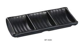 Yanco BP-4030 Black Pearl-2 三重酱汁盘,7.5 英寸长,3.5 英寸宽,密胺,黑色,哑光饰面
