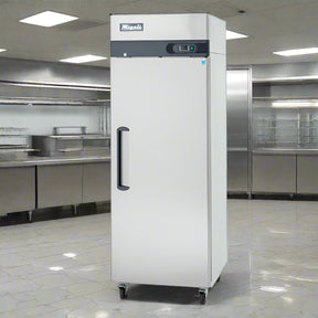 Migali® C-1F-HC直入式冷冻柜非常适合在商业厨房中储存所有类型的食物。直入式系列采用强大的强制空气制冷系统,可使整个柜内保持低温均匀。该型号还集成了数字控制器和温度读数器,可实现更好的温度控制、更高的能源效率和一流的性能。C-1F 同样引人注目且符合人体工程学,拥有高抛光不锈钢外部和内部、圆形门边和凹进式门把手。23 立方英尺的内部空间宽敞,标配 3 个可调节搁板,但内部空腔内也可安装可选的面包架,用于放置 18 英寸 x 26 英寸烤盘或 12 英寸 x 20 英寸酒店烤盘。