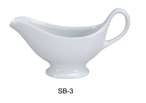 Yanco SB-3 调味汁船,容量 3.5 盎司,长 7 英寸,宽 2 英寸,高 2.15 英寸,瓷器,颜色超白。
